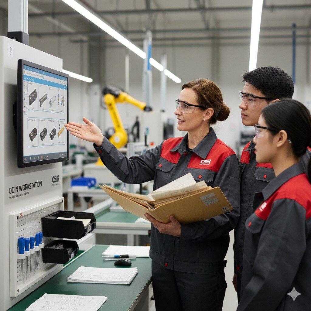 ODIN Workstation creates a live digital twin of your assembly line. The data flowing beneath the line represents real-time insights captured from every operator, station, and machine. This foundation allows you to train faster, improve performance, and scale production with precision.